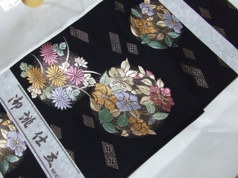 濃い地色の花柄の帯が欲しい。