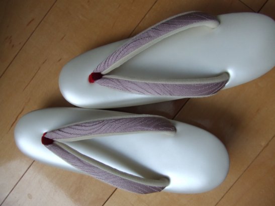 真珠色の台にくすんだ薄紫の絹の鼻緒をすげてもらって。